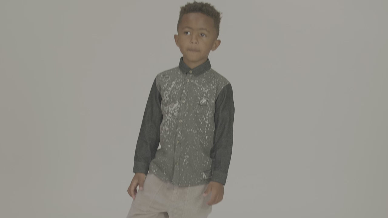 Wir stellen das ultimative Jeanshemd vor! Einzigartiges Ombré-gewaschenes Denim mit abgenutzten Patches und Farbspritzdesign. Schlichte Ärmel und markenbezogene Knöpfe verleihen eine einzigartige Note.