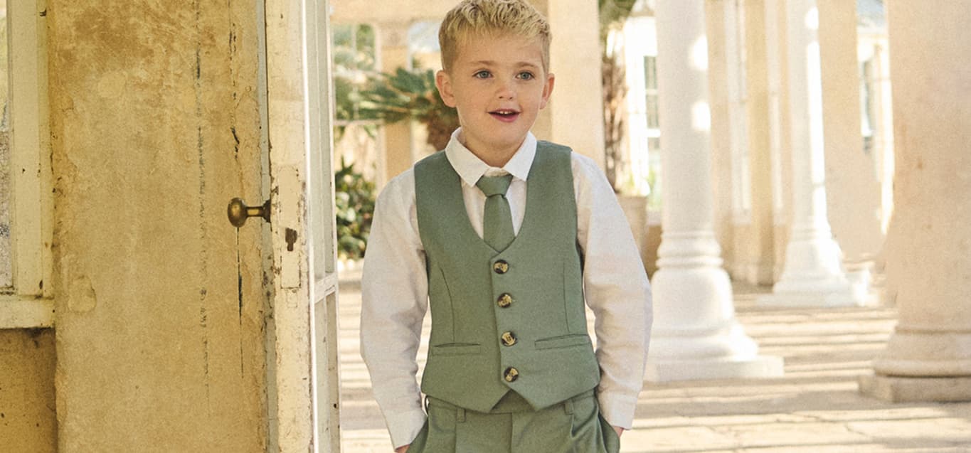 Avviso: Potrebbe rubare la scena agli sposi! Dai eleganti abiti per damigelle dei fiori ai raffinati abiti per paggetti, acquista la nostra Collezione Matrimonio per creare look perfetti per le foto dei tuoi piccoli.